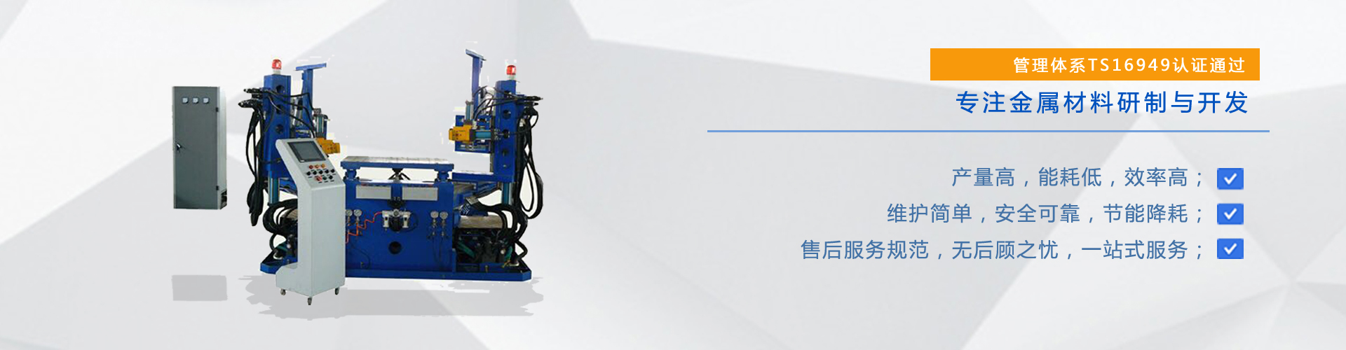 公司主要從事專用設備的研發與生產。專業制造金屬異型材軋輥成型流水線與金屬PVC、TPE等復合擠出成型流水線,三維自動化拉彎機,直線/圓弧伺服跟蹤切斷機。